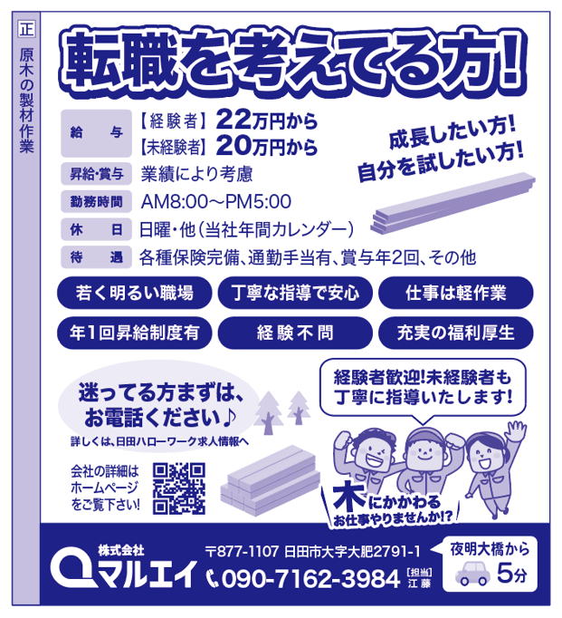 | 勤務地 | 大分県日田市大字大肥2791-1 【地図】 |
